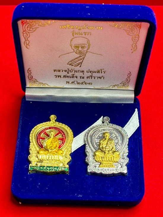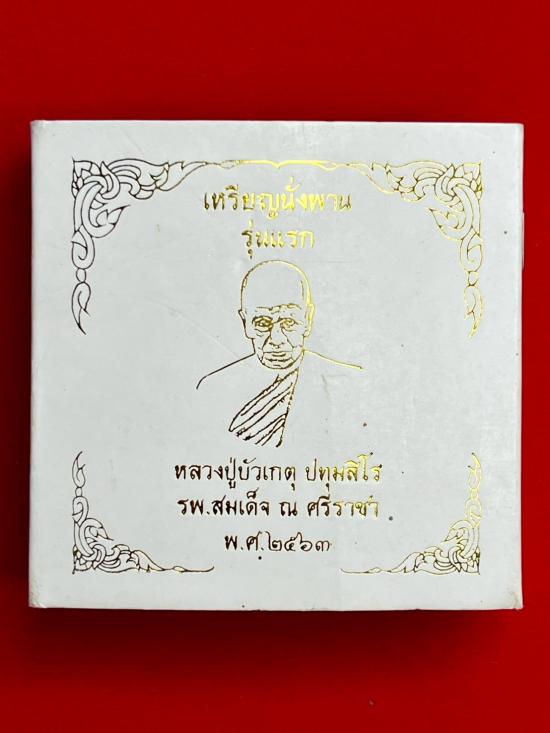 เคาะเดียวแดง เหรียญนั่งพาน รุ่นแรก หลวงปู่บัวเกตุ ปทุมสิโร 1กล่อง มี 2 องค์