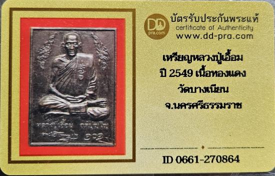 เหรียญพ่อท่านเอื้อม วัดบางเนียน อายุ 101 ปี พร้อมบัตร DD