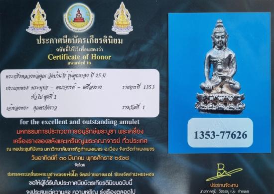พระกริ่งหลวงพ่อคูณ วัดบ้านไร่ รุ่นคูณทอง เนื้อเงิน ปี 2537 (ตอกโค้ด) พร้อมใบประกาศ ติดรางวัลที่ 1 งานจังหวัดกำแพงเพชร (งานสมาคมฯ)