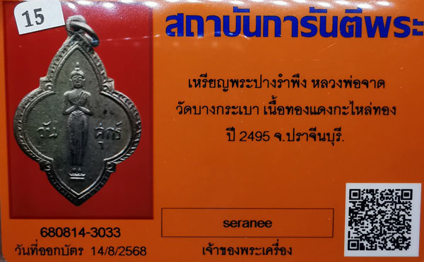 (วันศุกร์)เหรียญพระปางรำพึง หลวงพ่อจาด วัดบางกระเบา เนื้อทองแดงกะไหล่ทอง ห่วงเดิม ปี2495 จ.ปราจีนบุรี + บัตรG-pra สภาพเดิมค่ะ |
