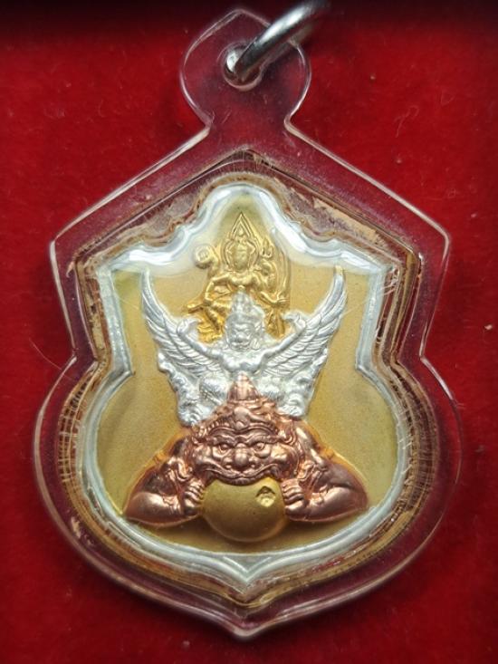 เหรียญนารายณ์ทรงครุฑประทับราหู รุ่นแรก ท่านเจ้าคุณธงชัย วัดไตรมิตร ปี 45 เนื้อชุบ 3 กษัตริย์
