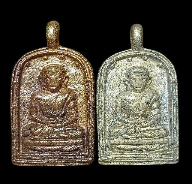 เหรียญจอบ หลวงพ่อไปล่ วัดกำแพง "รุ่น 4 เนื้อทองแดง-ทองเหลือง พิมพ์ใหญ่ 2 เหรียญ