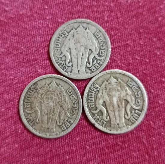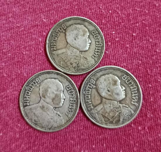 เหรียญกษาปณ์ ร.6 ราคาหนึ่งสลึง เนื้อเงิน รวม 3 เหรียญครับ