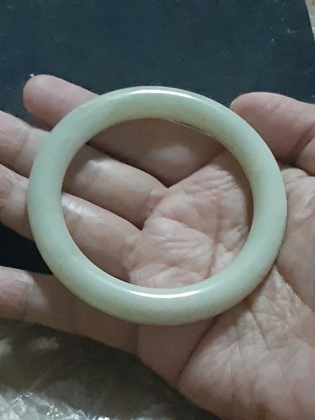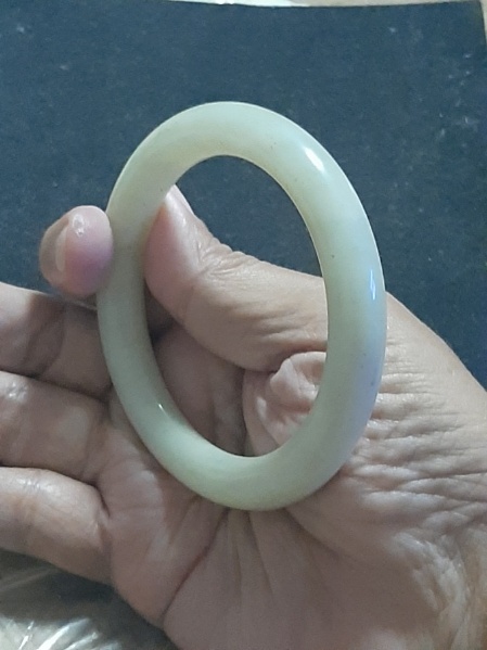 กำไลข้อมือหยกเขีบวแท้ๆ ขนาดวัดใน 6 ซม. หน้ากว้าง 1 ซม.สภาพสวยๆ เก่าเก็บ (เคาะเดียว)