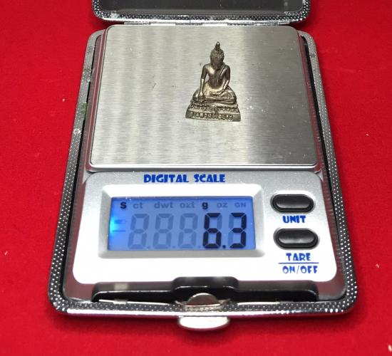 องค์พระเป็นเนื้อเงินแท้ น้ำหนัก 6.3 กรัม แต่องค์นี้ไม่มีอุดกริ่งใต้ฐานนะครับ