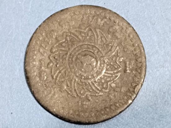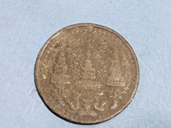 เหรียญเนื้อดีบุกพระมงกุฏ-พระแสงจักร(ช้างใหญ่) 1/8F ราคาอัฐ รัชกาลที่4 พ.ศ2405 ขนาด29มม. หายาก
