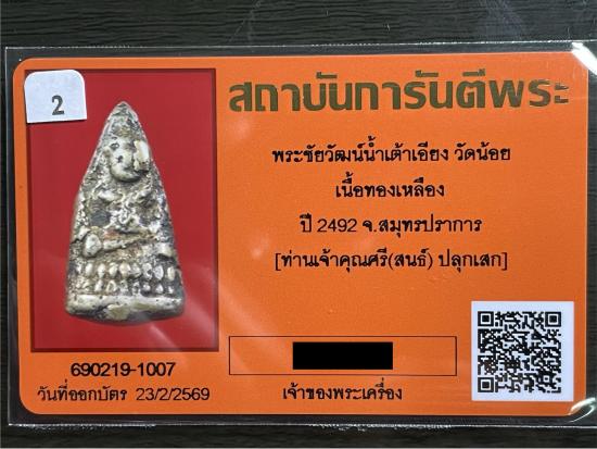 พระชัยวัฒน์น้ำเต้าเอียง วัดน้อย จ.สมุทรปราการ ปี2492 เจ้าคุณศรี(สนธิ์) วัดสุทัศน์ฯ ปลุกเสก
