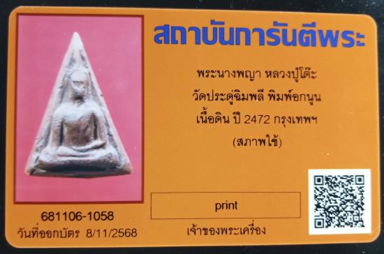 พระนางพญาหลวงปู่โต๊ะ วัดประดู่ฉิมพลี พิมพ์อกนูน เนื้อดิน ปี 2472 (พร้อมบัตรรับรองครับ)