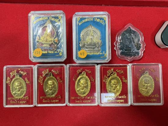 HOT!!! เหรียญรวยพันล้าน ปี 2564 จำนวน 3 เหรียญ เนื้อกะไหล่ทองลงยาแดง ,เนื้ออัลปาก้า , เนื้อทองแดง และเหรียญรวย รวย เฮง เฮง บล๊อค 1.2 จำนวน 5 เหรียญ รวมทั้งหมด 8 เหรียญ หลวงพ่อรวย วัดตะโก เคาะเดียวแดง