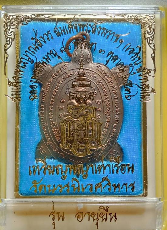 พญาเต่าเรือน รุ่นอายุยืน ฉลองพระชนมายุ ๘๐ พรรษา ๓ ตุลาคม ๒๕๓๖ เนื้อนวโลหะผสมชนวนพระสังกัจจายน์ญส.ปี ๒๕๓๐ (พระสังกัจจายน์ญส.รุ่นแรก ปี ๒๕๓๐ เป็นรุ่นสำคัญมีส่วนผสมของชนวนพระกริ่งบวรรังสี ๒๕๒๘ และชนวนพระกริ่งปวเรศ ๒๕๓๐ ล้วน ๆ โดยไม่มีชนวนพระรุ่นอื่นเจือปนเลย) พิธีพุทธาภิเษก-ชัยมังคลาภิเษก ณ พระอุโบสถวัดบวรนิเวศวิหาร หลวงปู่หลิว ปณฺณโก วัดไร่แตงทอง เทพเจ้าแห่งพญาเต่าเรือน ร่วมปลุกเสกในพิธี หลวงพ่อเปิ่น หลวงพ่อแย้ม วัดสามง่าม หลวงพ่อพูล วัดไผ่ล้อม หลวงพ่อไสว วัดปรีดาราม หลวงพ่อแช่ม วัดดอนยายหอม หลวงพ่อยิด วัดหนองจอก หลวงพ่อสง่า วัดบ้านหม้อ ฯลฯ ร่วมพิธี เคาะเดียว พระมาพร้อมกล่องเดิม ตอกโค๊ต ซิ่ว ภาษาจีน ที่แปลว่าอายุยืนโดยตอกคนละฝั่งกับเนื้อทองแดงเป็นการจำแนกเนื้อหา