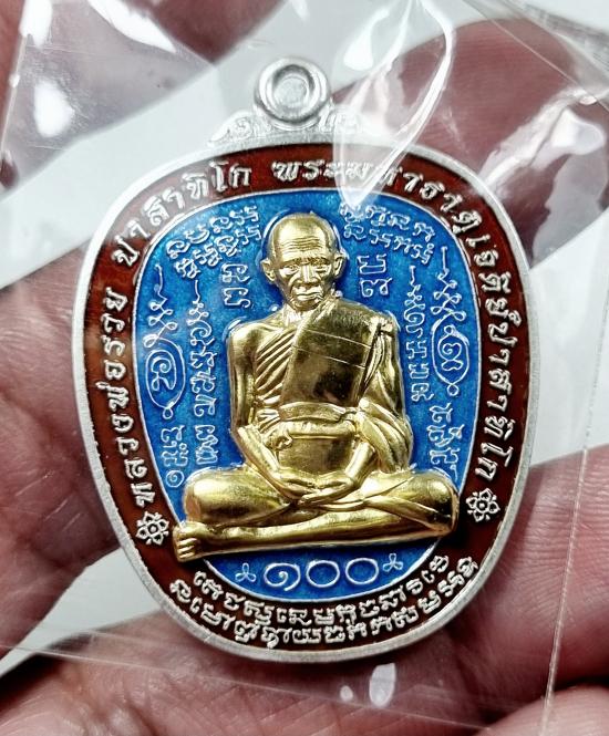 เหรียญแอปเปิ้ลใหญ่ รุ่นขอให้รวย ลพ.รวย วัดตะโก เนื้อเงินลงยาหน้ากากทองคำ