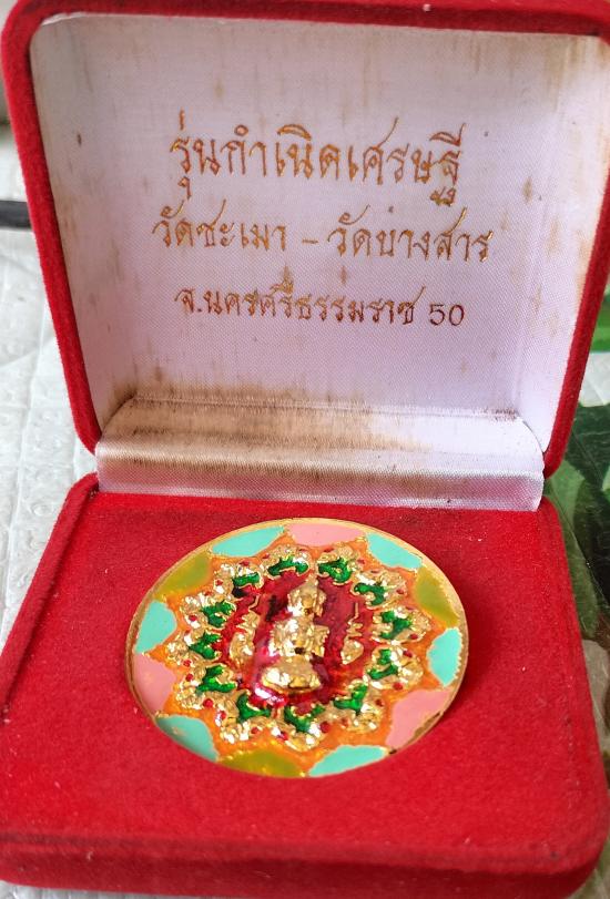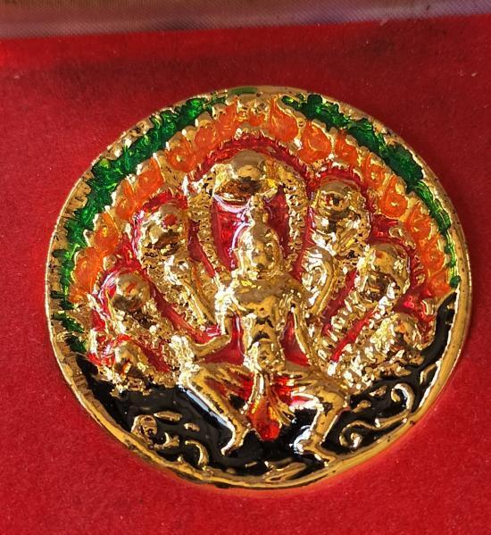 องค์พ่อจตุคามรามเทพ หลังเศียรหลักเมือง รุ่นกำเนิดเศรษฐี เนื้อกะไหล่ทองลงยาราชาวดี ขนาด5ซม.วัดชะเมา-วัดบางสาร นครศรีธรรมราช