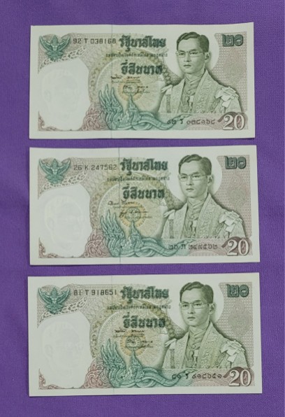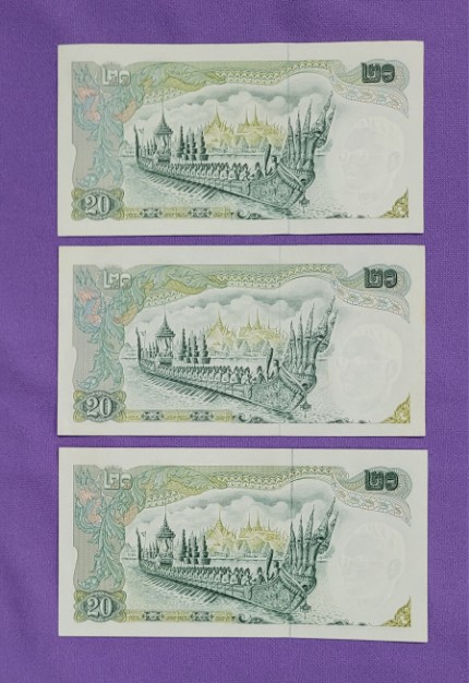 ธนบัตร 20 บาท หลัง เรืออนันตนาคราช 3 ฉบับ |