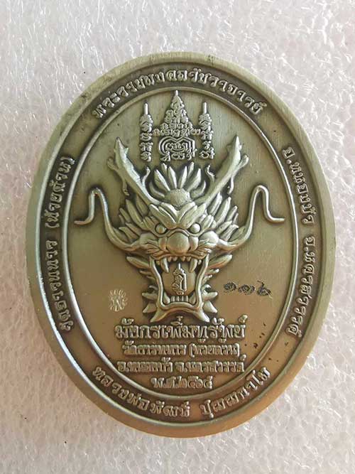 เนื้ออัลปาก้า ลงยาแดง เลข136 รุ่นมังกรเพิ่มทรัพย์ หลวงปู่พัฒน์ วัดห้วยด้วน