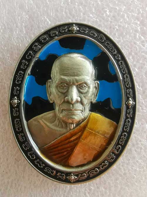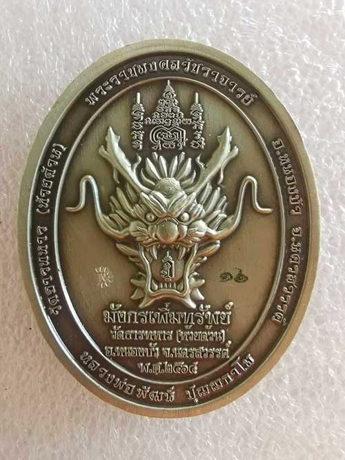 เนื้ออัลปาก้า ลงยาดำ-ฟ้า เลข16 รุ่นมังกรเพิ่มทรัพย์ หลวงปู่พัฒน์ วัดห้วยด้วน