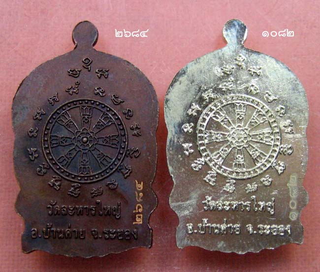เหรียญนั่งพาน หลวงพ่อสิน วัดละหารใหญ่ ปี ๒๕๕๔ เนื้อทองแดงรมดำ หมายเลข ๒๖๘๔ เนื้ออัลปาก้า หมายเลข ๑๐๘๒ พระเก่าปีลึก สวยๆพร้อมกล่องเดิมๆจากวัด
