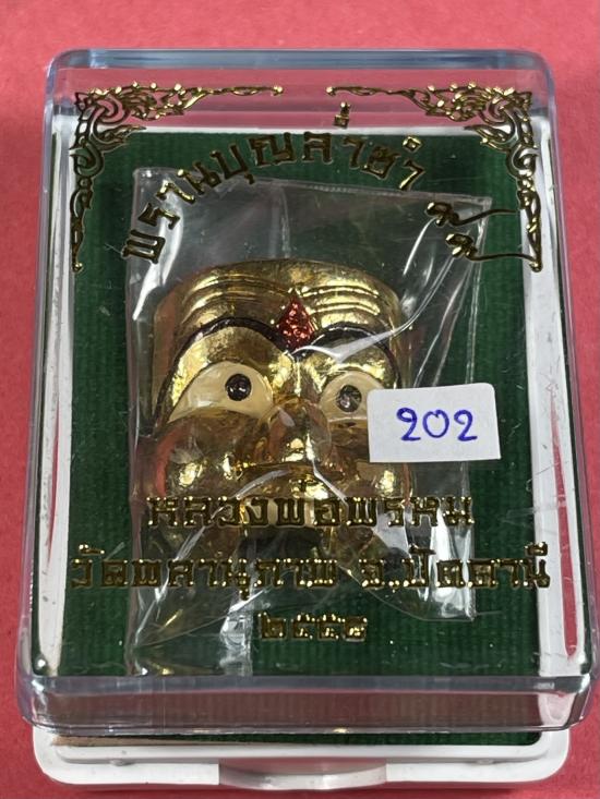 หน้ากากพรานบุญ รุ่น ล่ำซำ99 พ่อท่านพรหมวัดพลานุภาพ จ.ปัตตานี ปี2558 หน้าทอง พิมพ์ใหญ่ หลังอุดมวลสาร ฝังตะกรุด+จีวร+เกษา ตอกโค้ด