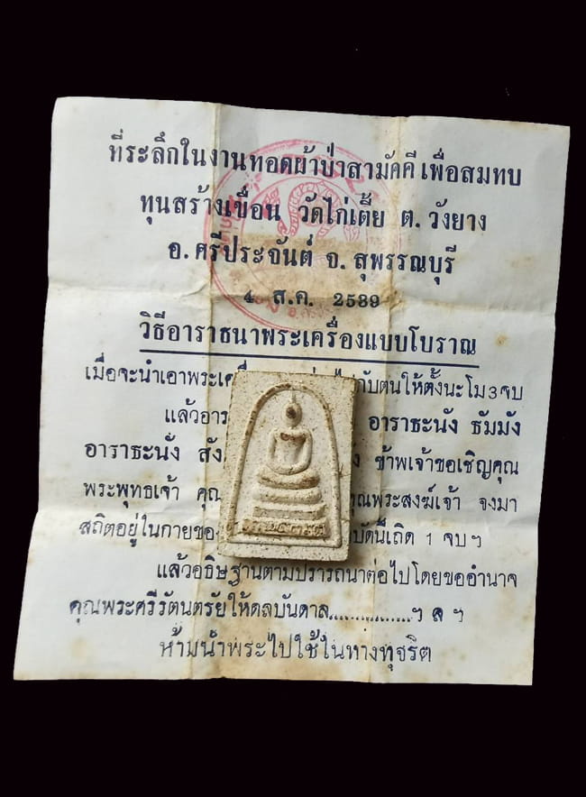 วัดใจ 100 พระสมเด็จสร้างเขื่อน หลวงตาจวน วัดไก่เตี้ย ปี2539 พร้อมใบฝอย |