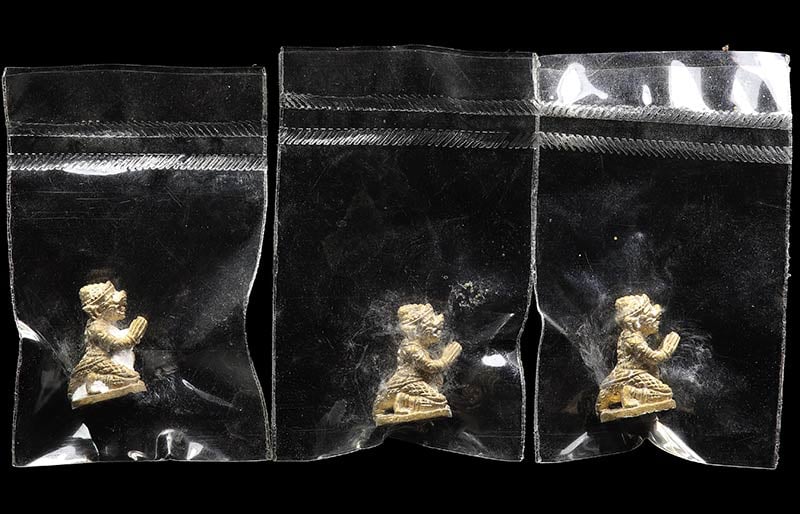 เนื้อทองเหลืองหล่อ อยู่ในถุงซีนเดิมๆไม่ได้แกะทั้ง 3 ตัวครับ |