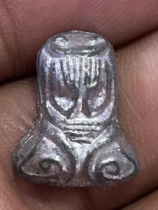 .พระปิดตา เนื้อตะกั่ว พิมพ์ครึ่งซีก หลังมีรอยจาร ไม่ทราบที่ครับ พระบ้านเหมามาลงขายครับ |