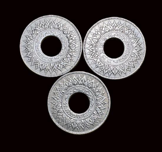 3 เหรียญ สตางค์รู 10 สต เนื้อเงิน พศ 2484