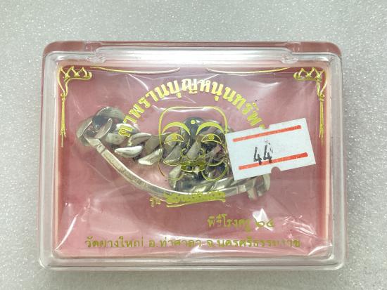 เลสข้อมือ พรานบุญหนุนทรัพย์ รุ่นรวยแน่นแน่น วัดยางใหญ่ 2564 หนัก 2 บาท เนื้ออัลปาก้า ยาว 16 ซ.ม. ( รวมตะขอ ) กล่องเดิม |