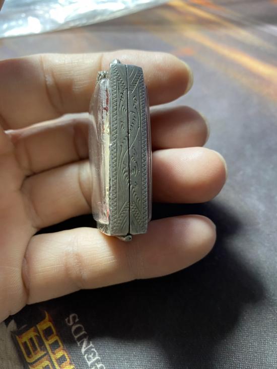วัดใจของเหมามาขายถูกตามสภาพ ตลับเงินโลหะผสม ใส่พระสมเด็จหรือใกล้เคียง แถมพระสมเด็จพิมพ์วัดเกศโยไม่ทราบที่และปีสร้าง |