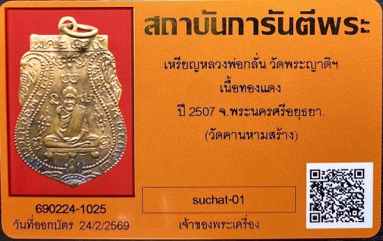 เหรียญหลวงพ่อกลั่น วัดพระญาติฯ เนื้อทองแดง ปี 2507 จ.พระนครศีอยุธยา วัดคานหามสร้าง |