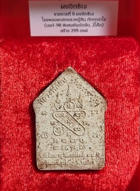 - รก.9 ผงอิทธิเจ โรยพลอยเสก (เลข 221 เลขสวยๆ เป็นเลขความสำเร็จ ช่วยให้ได้รับชัยชนะในสิ่งที่มุ่งหวัง เสริมความมั่นคง ความสามัคคีและเสน่ห์เมตตา) พร้อมกล่อง