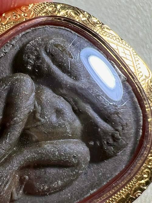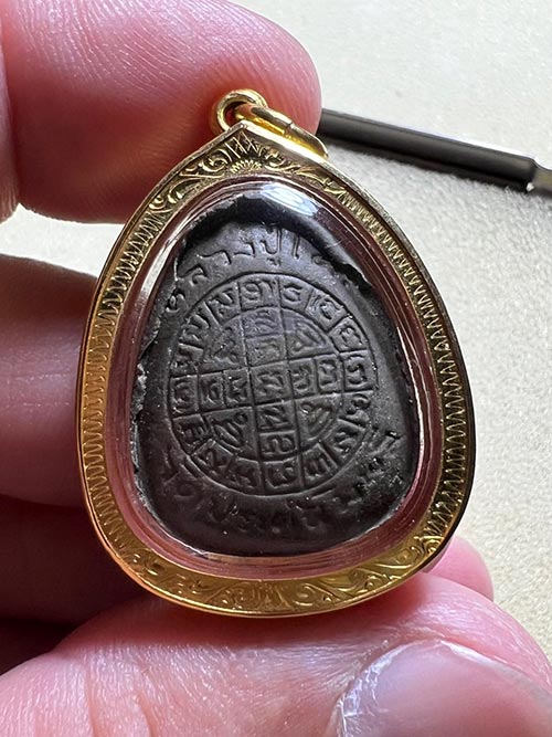 ปิดตายันต์ดวงเล็ก ปี21 เนื้อใบลาน(เนื้อดำ) สภาพสวย นิ้วติดชัด ยันต์หลังคมชัด พร้อมเลี่ยมทองยกซุ้ม (มีบัตรรับรองพระแท้)