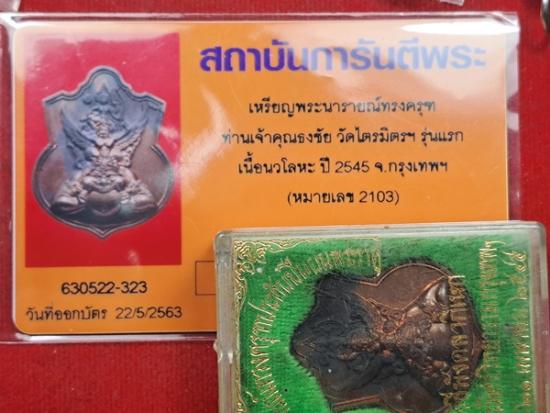 เหรียญพระนารายณ์ทรงครุฑฯ เนื้อนวะ เจ้าตุณธงชัย วัดไตรมิตรฯ 2545