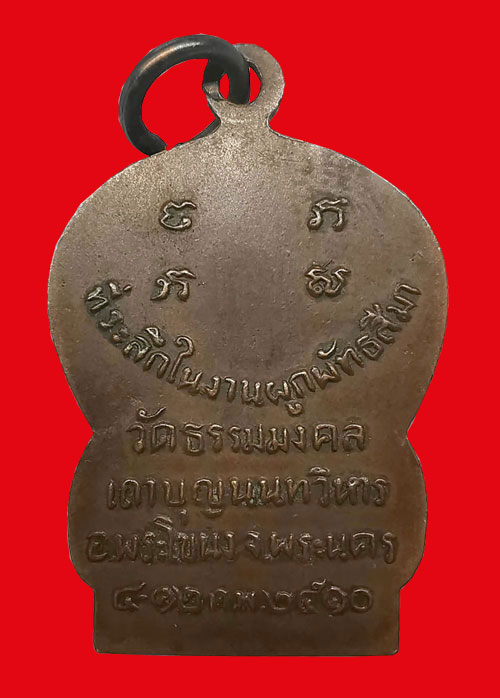 เหรียญพระอาจารย์วิริยังค์ วัดธรรมมงคล รุ่นแรก พิมพ์เสมา เนื้อทองแดง ห่วงเดิม ปี2510 กรุงเทพฯ + บัตรG-pra สภาพเดิมค่ะ