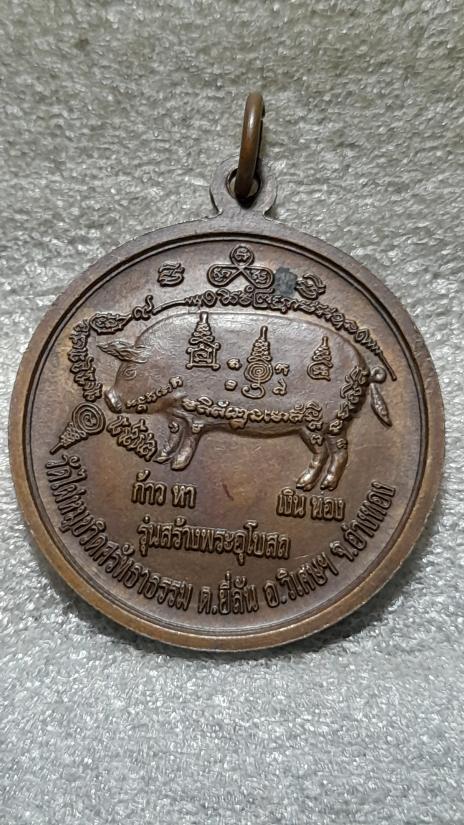 วัดใจเคาะเดียว.......100......เหรียญยันต์ หลังหมู ก้าวหา เงินทอง รุ่นสร้างพระอุโบสถ วัดไผ่หมูขวิด จ.อ่างทอง สวย |