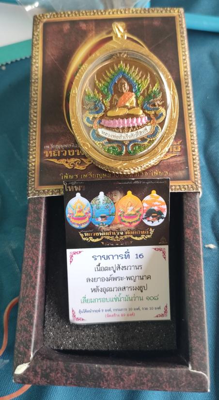 เหรียญพุทธศิลป์ หลวงพ่อสำเร็จศักดิ์สิทธิ์รุ่น"ให้พร"วัดหนองตาโล่ สระบุรี เนื้อชนวนมวลสาร ลงยาองค์พระ-พญานาค หลังอุดมวลสารผงธูปติดตะกรุดทองแดง เลี่ยมกรอบชุบทอง หมายเลข ๕๖ พร้อมกล่อง เหรียญเมตตา ค้าขาย |