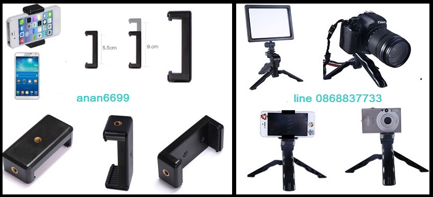 ขาตั้งกล้องสามขา พร้อมตัวหนีบสำหรับมือถือ