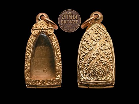 ตลับพระ ผลิตจากสัมริด หรือ บรอนซ์ (bronze) สำหรับพระรอดหรือพระเครื่องขนาดเล็ก ไม่มีการชุบ |