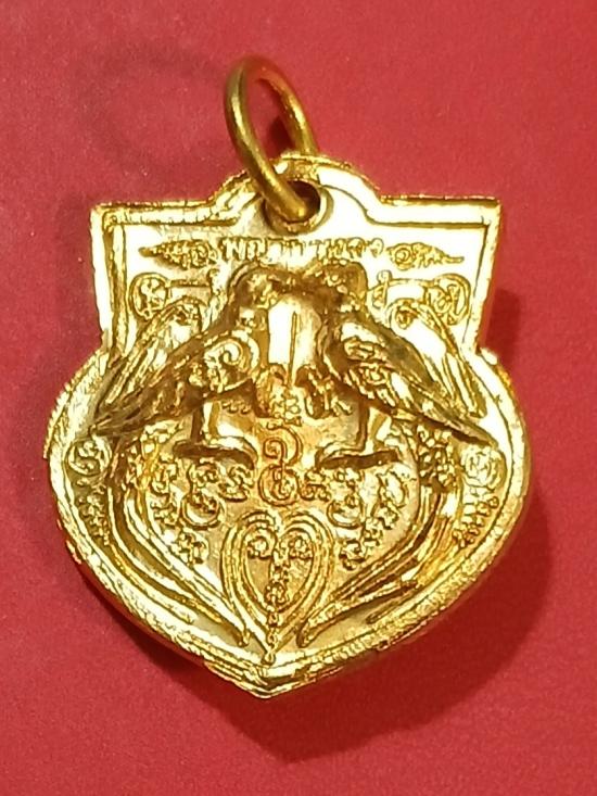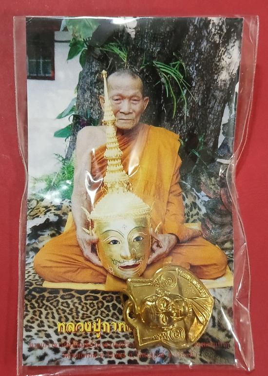 เหรียญหน้าฐานเล็ก เนื้อทองผสม หลวงปู่กาหลง หมายเลข 7248 ด้านหลัง นกสาริกาคู่ ปี 2550 มาพร้อมรูปหลวงปู่กาหลง ซองเดิมจากวัดครับ