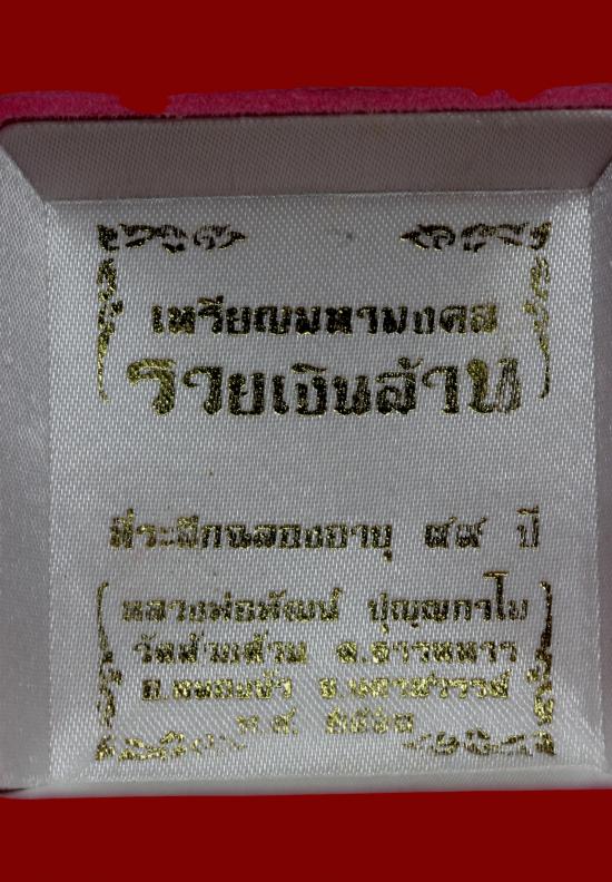 เหรียญหลวงพ่อพัฒน์ วัดห้วยด้วน รุ่นรวยเงินล้าน เนื้อเงินลงยาหน้าทอง ปี 2563 จ.นครสวรรค์