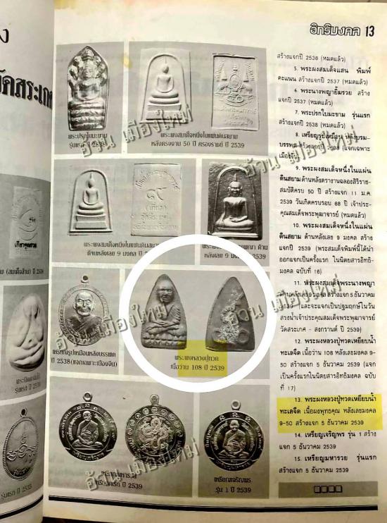 ++วัตถุประสงค์ : สร้างแจกในวันที่ 5 ธันวาคม พ.ศ.2539 และ แจกพร้อมนิตยสาร อิทธิมงคล ปีที่ 2 ฉบับที่ 17