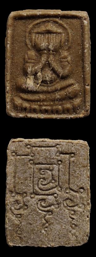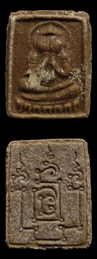 พระปิดตาเนื้อผงน้ำมัน หลวงพ่อเชือน วัดโพธาราม จ.ตรัง สามองค์ เป็นยันต์กลับ 2 องค์