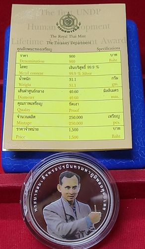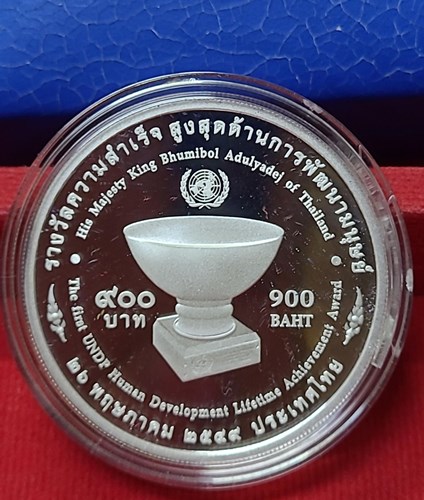 เหรียญ 900 บาท เนื้อเงินขัดเงา UNDP รางวัลความสำเร็จสูงสุดด้านการพัฒนามนุษย์ ปี2549