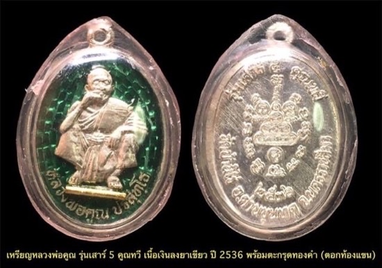 เหรียญหลวงพ่อคูณ รุ่นเสาร์ 5 คูณทวี เนื้อเงินลงยาเขียว ปี 25 36 เคาะเดียว