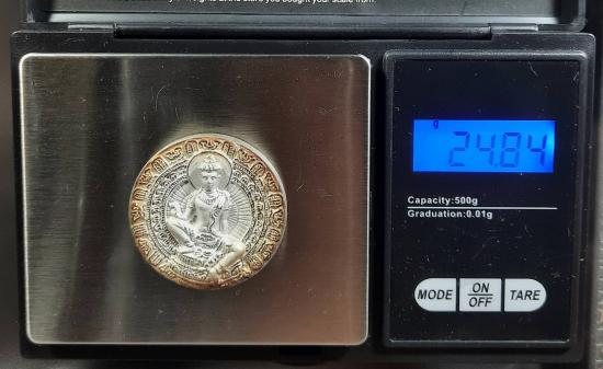 รายละเอียด เหรียญจตุคามรามเทพ รุ่นเจ้าสัวยุค8 วัดมหาธาตุวรมหาวิหาร จ.นครศรีธรรมราช ขนาด 3.2 ซม.เนื้อเงิน หมายเลข 3827 อยู่กล่องเดิมจากวัด