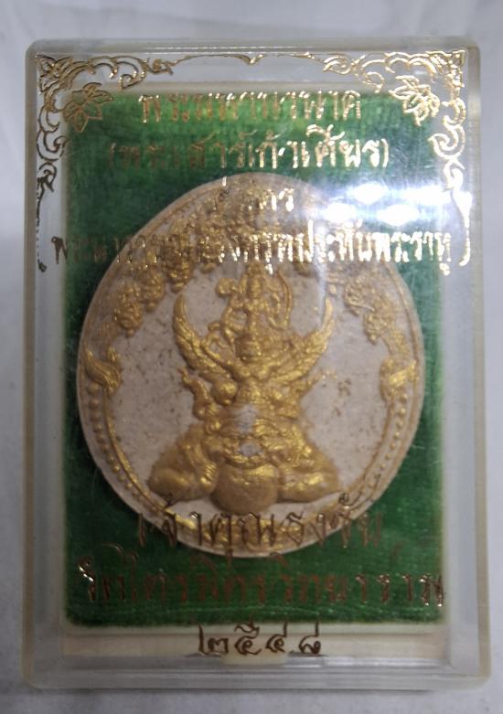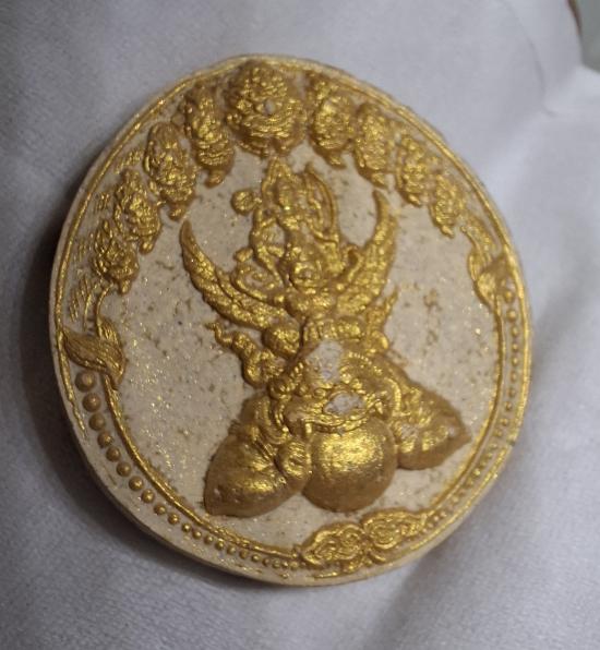 เหรียญพระนารายณ์ทรงครุฑ พระมหานวนาคพระเสาร์คู่มิตรท่านเจ้าคุณธงชัย วัดไตรมิตร (พิมพ์ใหญ่) เนื้อผงปัดทองฝังยันต์ดวงเนื้อทองแดง กล่องเดืม ปี 2548