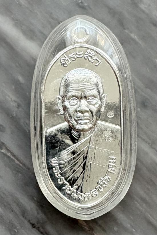 เหรียญใบพาย เนื้อเงิน หลวงปู่แผ้ว ปวโร วัดรางหมัน จ.นครปฐม หมายเลข 3114 ตอกโค้ท แผ้วและเงิน พ.ศ.2566 อายุ 100 ปี เหลี่ยมเก็บผิว แบ่งปันให้นำไปบูชากันครับ
