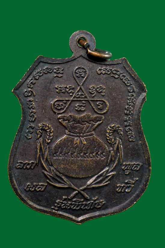 วัดใจ เหรียญหลวงพ่อผัน วัดราษฎร์เจริญ (วัดแปดอาร์) สระบุรี รุ่นพิเศษ หลังถุงเงิน ลาภ ผล พูน ทวี เนื้อทองแดง ปี 2533