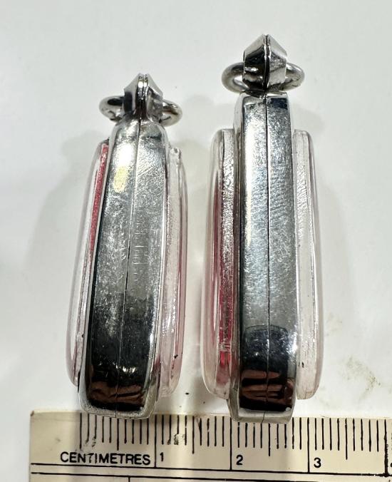 ตลับมือสองสแตนเลสทรงสามเหลี่ยมใส่เหรียญหลวงพ่อเงินปี 15 ได้ 2 ใบแบบเปิดหน้า-หลังขนาด 3 x 2 ซม. |