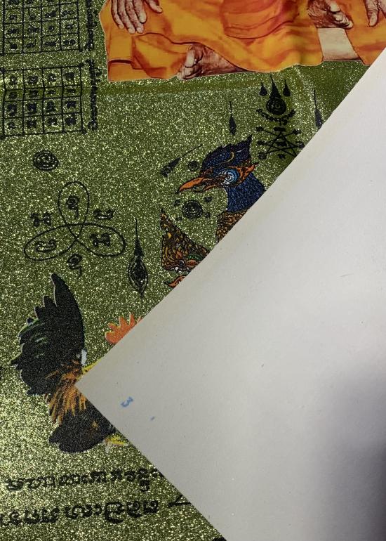 ผ้ายันต์เกร็ดทองมั่งมี พิมพ์นั่งรับทรัพย์ no.3 (สมนาคุณยกลัง) แคนวาสอย่างดี ขนาด 16*24 นิ้ว |