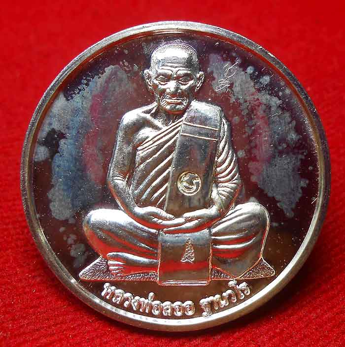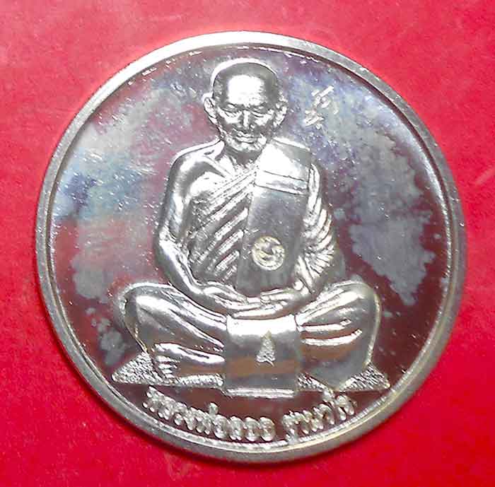 เหรียญเสาร์ 5 มหาลาภ เนื้อเงิน หลวงพ่อลออ ฐานวโร วัดหนองหลวง อ.ท่าตะโก จ.นครสวรรค์ ปี 2553 มีจาร ตอก 4 โค๊ต