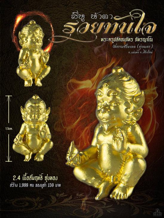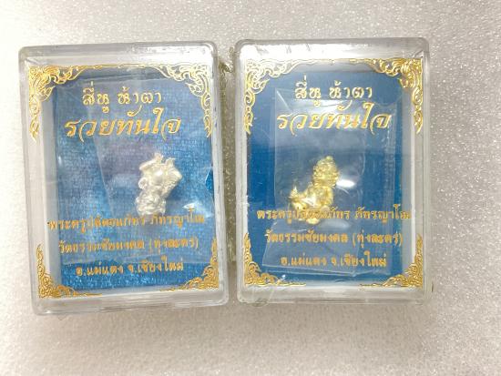 สี่หู ห้าตา รวยทันใจ พระครูปลัดธนภัทร ภัทรญาโณ วัดธรรมชัยมงคล จ.เชียงใหม่ เนื้อสัมฤทธิ์ชุบทอง ,สัมฤทธิ์ชุบเงิน กล่องเดิม ( 2 องค์ )